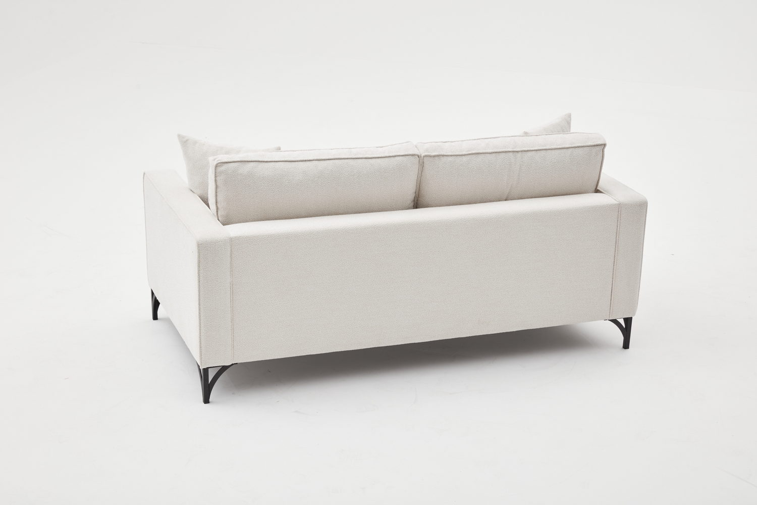 Ürün Ölçüleri: Genişlik : 180 cm Yükseklik : 83 cm Sırt Yükseklik : 43 cm Derinlik : 91 cm Oturum Derinliği : 60 cm Ayak Yüksekliği : 13 cm Oturum Yüksekliği : 40 cm Kol Kalınlığı : 14 cm İç Genişlik (Kollar Hariç) : 150 cm Ürün Özellikleri: Kumaş : Dokuma Buklet, %100 PES kumaş.; Sünger : 15 cm 28 DNS Soft Sünger; sırt dolguları kırpıntı sünger ve boncuk elyaf karışım Ayak : Metal Statik Dokulu Boya ayaklar kullanılmıştır.; İskelet :Doğal kayın kereste ile panel malzemelerden geçme ve vidalama sistemleriyle üretilmektedir.; Uygunluk : Çevre ve çocuk sağlığına uygun malzemeler ile üretilmiştir.; Paket : Mobilya ambalajı ile paketlenmiş ve toz girmesini önleyici ince naylon ile korunmuştur.; Paket Adet : Ürün 1 paket olarak gönderilmektedir.; Kurulum : Ürünün sadece ayakları demonte olarak gönderilmektedir.; Montaj : Ürün ayaklarını şarjlı tornavida ile monte edebilirsiniz.; İçerik : Ayaklar ve bağlantı elemanları ürün paketinden çıkmaktadır.; Ürün Değişimi ve İade Koşulları: Ürünü size gönderilen sevk irsaliyesi ile birlikte gönderin.; Ürün iadesinin kabul edilmesi için; Ürünün orijinal kutusu/ambalajı bozulmamış, hasarsız, eksiksiz, tekrar satılabilir özelliğini kaybetmemiş olması gerekmektedir.; Aksi durumlar için ürün zarar bedeli satın almış olduğunuz satış platformu yetkilisine bildirilecektir.; Ürünlerin size sağlam bir şekilde ulaşmasında paketleme standartları çok önemlidir.; Lütfen ürünü iade etmeden önce eğer ürünü paketinden çıkarmışsanız aynı standartta yeniden paketleyiniz.; Bütün standart aksesuarları hasarsız ve tam olarak orijinal paketleri ile birlikte gönderilmelidir.; Kurulum ve montajı yapılan ürünler için kesinlikle iade işlemi yapılamamaktadır.; Önemli Uyarı:Siparişinizi teslim alırken lütfen kontrol ediniz pakette herhangi bir hasar görürseniz kargo görevlisine hasar tespit tutanağı tutturunuz.; İade ve değişim kuralları gereği hasar tespit tutanağı tutulmadan sipariş iptali yapılan paketlerin iadeleri kabul edilmemektedir