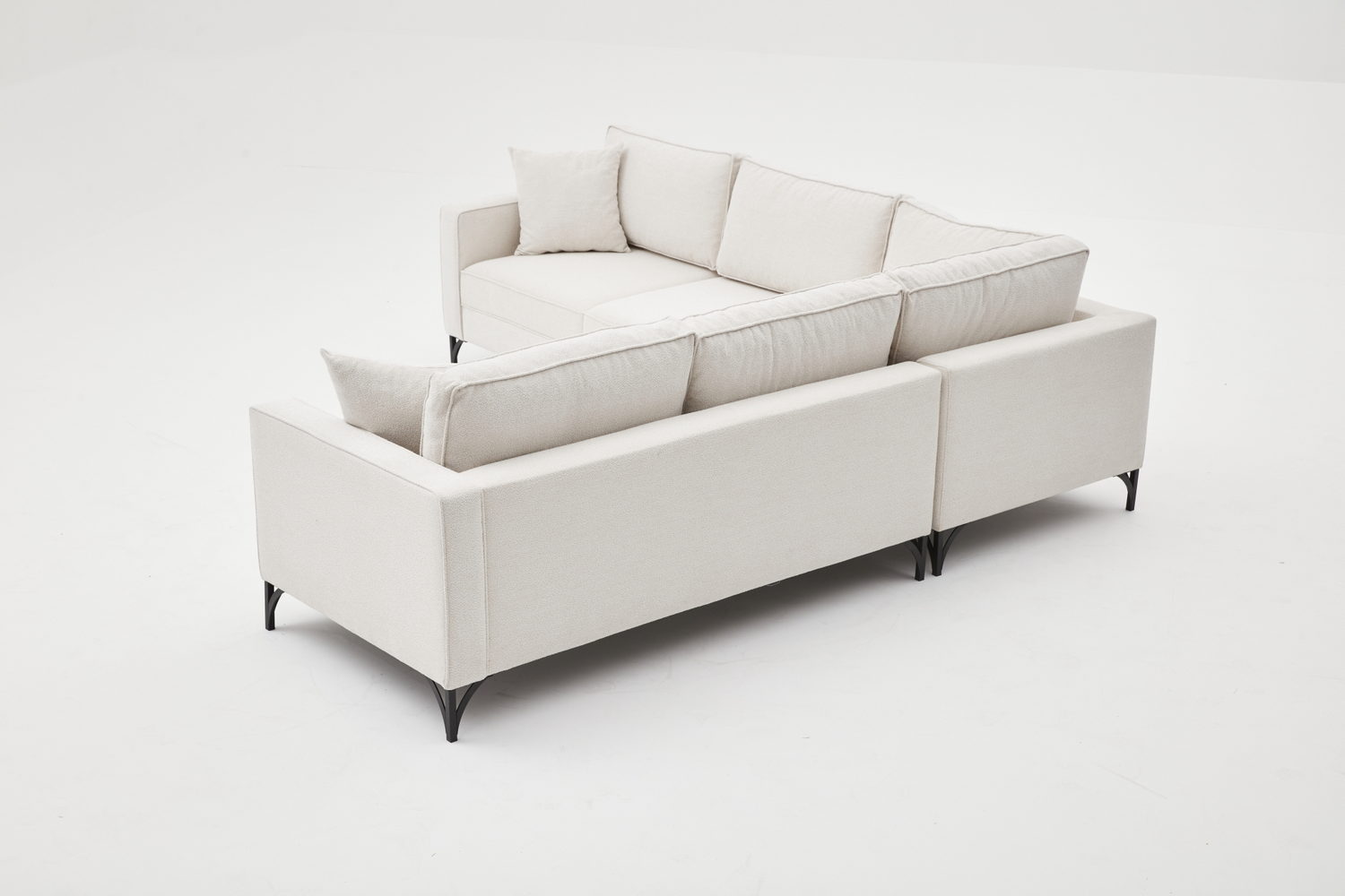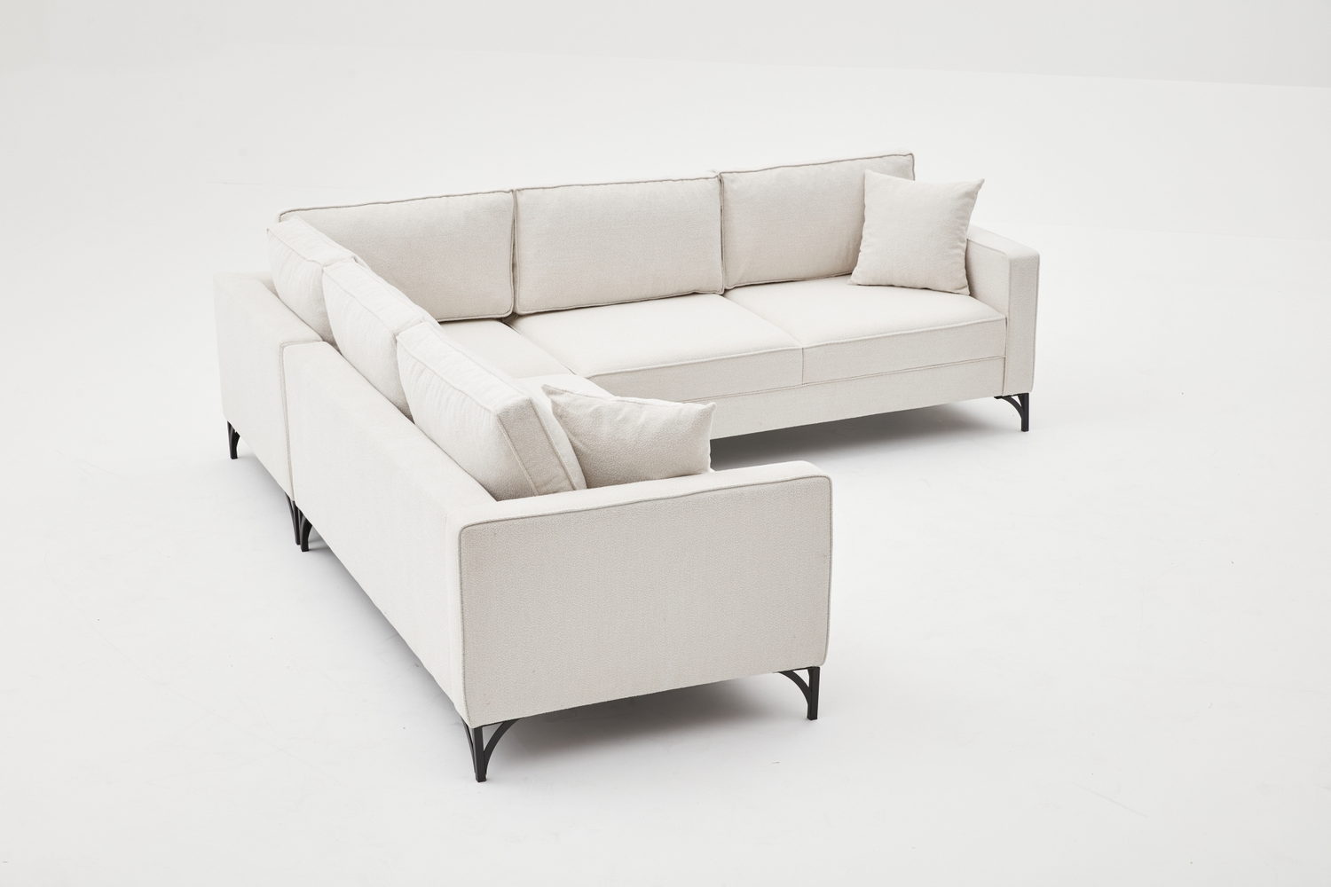 Ürün Ölçüleri: Genişlik : 258 *258 cm Yükseklik : 83 cm Sırt Yükseklik : 43 cm Derinlik : 91 cm : Oturum Derinliği : 60 cm Ayak Yüksekliği : 13 cm Oturum Yüksekliği : 40 cm Kol Kalınlığı : 14 cm İç Genişlik (Kollar Hariç) : 230*230 cm Ürün Özellikleri: Kumaş : Dokuma Buklet, %100 PES kumaş.; Sünger : 15 cm 28 DNS Soft Sünger; sırt dolgu minderler kırpıntı sünger ve boncuk elyaf Ayak : Metal Statik Dokulu Boya ayaklar kullanılmıştır.; İskelet :Doğal kayın kereste ile panel malzemelerden geçme ve vidalama sistemleriyle üretilmektedir.; İskelet : Doğal kayın fırınlanmış kereste ve zıvana geçme ile üretilmiştir.; Uygunluk : Çevre ve çocuk sağlığına uygun malzemeler ile üretilmiştir.; Paket : Mobilya ambalajı ile paketlenmiş ve toz girmesini önleyici ince naylon ile korunmuştur.; Paket Adet : Ürün 3 paket olarak gönderilmektedir.; Kurulum : Ürünün sadece ayakları demonte olarak gönderilmektedir.; Montaj : Ürün ayaklarını şarjlı tornavida ile monte edebilirsiniz.; İçerik : Ayaklar ve bağlantı elemanları ürün paketinden çıkmaktadır.; Ürün Değişimi ve İade Koşulları: Ürünü size gönderilen sevk irsaliyesi ile birlikte gönderin.; Ürün iadesinin kabul edilmesi için; Ürünün orijinal kutusu/ambalajı bozulmamış, hasarsız, eksiksiz, tekrar satılabilir özelliğini kaybetmemiş olması gerekmektedir.; Aksi durumlar için ürün zarar bedeli satın almış olduğunuz satış platformu yetkilisine bildirilecektir.; Ürünlerin size sağlam bir şekilde ulaşmasında paketleme standartları çok önemlidir.; Lütfen ürünü iade etmeden önce eğer ürünü paketinden çıkarmışsanız aynı standartta yeniden paketleyiniz.; Bütün standart aksesuarları hasarsız ve tam olarak orijinal paketleri ile birlikte gönderilmelidir.; Kurulum ve montajı yapılan ürünler için kesinlikle iade işlemi yapılamamaktadır.; Önemli Uyarı:Siparişinizi teslim alırken lütfen kontrol ediniz pakette herhangi bir hasar görürseniz kargo görevlisine hasar tespit tutanağı tutturunuz.; İade ve değişim kuralları gereği hasar tespit tutanağı tutulmadan sipariş iptali yapılan paketlerin iadeleri kabul edilmemektedir