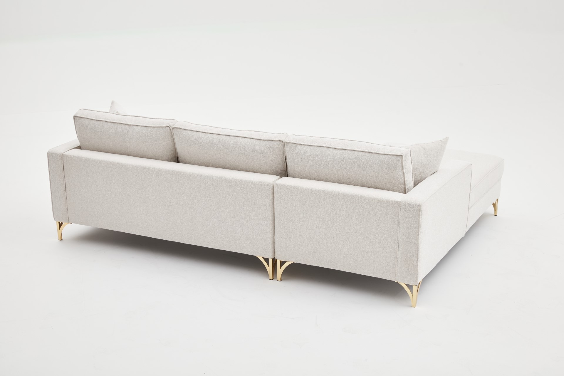 Ürün Ölçüleri: Genişlik : 258*181 cm Yükseklik : 83 cm Sırt Yükseklik : 43 cm Derinlik : 91 cm Oturum Derinliği : 60 cm Ayak Yüksekliği : 13 cm Oturum Yüksekliği : 40 cm Kol Kalınlığı : 14 cm İç Genişlik (Kollar Hariç) : 230*145 cm Uzanma Derinlik : 145 cm Uzanma Genişlik : 90 cm Ürün Özellikleri: Kumaş : Dokuma Buklet , %100 PES kumaş.; Sünger : 15 cm 28 DNS Soft Sünger; sırt dolgu minderler kırpıntı sünger ve boncuk elyaf Ayak : Metal Statik Dokulu Boya ayaklar kullanılmıştır.; İskelet :Doğal kayın kereste ile panel malzemelerden geçme ve vidalama sistemleriyle üretilmektedir.; İskelet : Doğal kayın fırınlanmış kereste ve zıvana geçme ile üretilmiştir.; Uygunluk : Çevre ve çocuk sağlığına uygun malzemeler ile üretilmiştir.; Paket : Mobilya ambalajı ile paketlenmiş ve toz girmesini önleyici ince naylon ile korunmuştur.; Paket Adet : Ürün 2 paket olarak gönderilmektedir.; Kurulum : Ürünün sadece ayakları demonte olarak gönderilmektedir.; Montaj : Ürün ayaklarını şarjlı tornavida ile monte edebilirsiniz.; İçerik : Ayaklar ve bağlantı elemanları ürün paketinden çıkmaktadır.; Ürün Değişimi ve İade Koşulları: Ürünü size gönderilen sevk irsaliyesi ile birlikte gönderin.; Ürün iadesinin kabul edilmesi için; Ürünün orijinal kutusu/ambalajı bozulmamış, hasarsız, eksiksiz, tekrar satılabilir özelliğini kaybetmemiş olması gerekmektedir.; Aksi durumlar için ürün zarar bedeli satın almış olduğunuz satış platformu yetkilisine bildirilecektir.; Ürünlerin size sağlam bir şekilde ulaşmasında paketleme standartları çok önemlidir.; Lütfen ürünü iade etmeden önce eğer ürünü paketinden çıkarmışsanız aynı standartta yeniden paketleyiniz.; Bütün standart aksesuarları hasarsız ve tam olarak orijinal paketleri ile birlikte gönderilmelidir.; Kurulum ve montajı yapılan ürünler için kesinlikle iade işlemi yapılamamaktadır.; Önemli Uyarı:Siparişinizi teslim alırken lütfen kontrol ediniz pakette herhangi bir hasar görürseniz kargo görevlisine hasar tespit tutanağı tutturunuz.; İade ve değişim kuralları gereği hasar tespit tutanağı tutulmadan sipariş iptali yapılan paketlerin iadeleri kabul edilmemektedir