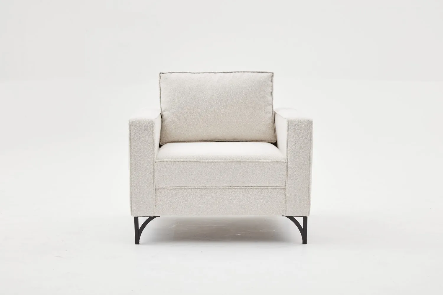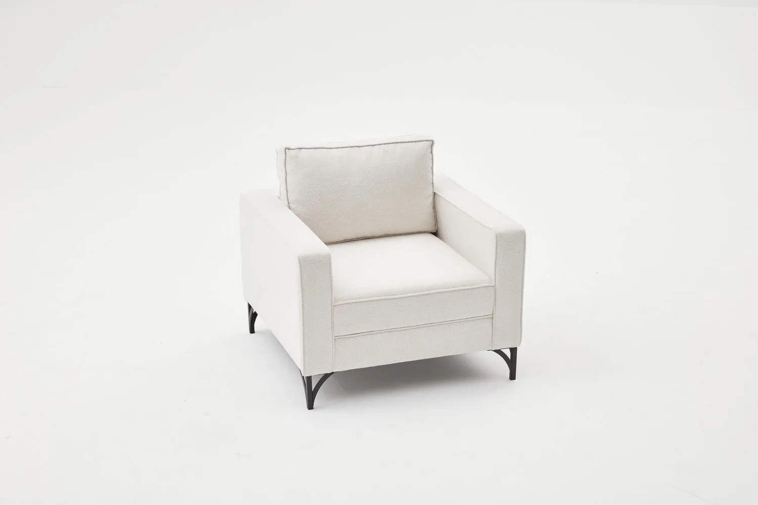 Ürün Ölçüleri: Genişlik : 90 cm Yükseklik : 83 cm Sırt Yükseklik : 43 cm Derinlik : 91 cm Oturum Derinliği : 60 cm Ayak Yüksekliği : 13 cm Oturum Yüksekliği : 40 cm Kol Kalınlığı : 14 cm İç Genişlik (Kollar Hariç) : 60 cm Ürün Özellikleri: Kumaş : Dokuma Buklet, %100 PES kumaş.; Sünger : 15 cm 28 DNS Soft Sünger; sırt dolguları kırpıntı sünger ve boncuk elyaf karışım Ayak : Metal Statik Siyah Dokulu Boya ayaklar kullanılmıştır.; İskelet :Doğal kayın kereste ile panel malzemelerden geçme ve vidalama sistemleriyle üretilmektedir.; Uygunluk : Çevre ve çocuk sağlığına uygun malzemeler ile üretilmiştir.; Paket : Mobilya ambalajı ile paketlenmiş ve toz girmesini önleyici ince naylon ile korunmuştur.; Paket Adet : Ürün 1 paket olarak gönderilmektedir.; Kurulum : Ürünün sadece ayakları demonte olarak gönderilmektedir.; Montaj : Ürün ayaklarını şarjlı tornavida ile monte edebilirsiniz.; İçerik : Ayaklar ve bağlantı elemanları ürün paketinden çıkmaktadır.; Ürün Değişimi ve İade Koşulları: Ürünü size gönderilen sevk irsaliyesi ile birlikte gönderin.; Ürün iadesinin kabul edilmesi için; Ürünün orijinal kutusu/ambalajı bozulmamış, hasarsız, eksiksiz, tekrar satılabilir özelliğini kaybetmemiş olması gerekmektedir.; Aksi durumlar için ürün zarar bedeli satın almış olduğunuz satış platformu yetkilisine bildirilecektir.; Ürünlerin size sağlam bir şekilde ulaşmasında paketleme standartları çok önemlidir.; Lütfen ürünü iade etmeden önce eğer ürünü paketinden çıkarmışsanız aynı standartta yeniden paketleyiniz.; Bütün standart aksesuarları hasarsız ve tam olarak orijinal paketleri ile birlikte gönderilmelidir.; Kurulum ve montajı yapılan ürünler için kesinlikle iade işlemi yapılamamaktadır.; Önemli Uyarı:Siparişinizi teslim alırken lütfen kontrol ediniz pakette herhangi bir hasar görürseniz kargo görevlisine hasar tespit tutanağı tutturunuz.; İade ve değişim kuralları gereği hasar tespit tutanağı tutulmadan sipariş iptali yapılan paketlerin iadeleri kabul edilmemektedir