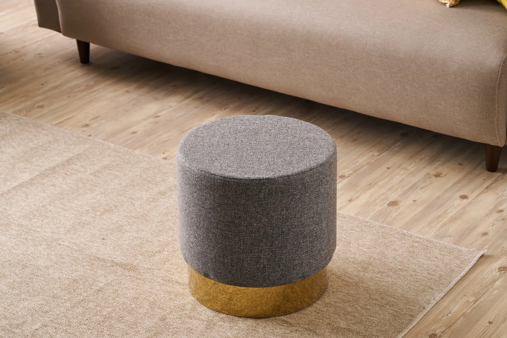 Ürün Ölçüleri: Çap : 40 cm Yükseklik (Prinç Metal Dahil) : 40 cm Ayak Prinç Metal : 9 cm Ürün Özellikleri: İskelet : Ahşap iskelet kullanılmıştır.; Ayak : Ayak olarak Prinç Metal Kullanılmıştır.; Sünger : Oturum süngerleri 32DNSSoft Sünger Gri.; Kumaş : Keten görünümlü polyester ve pamuk karışımıdır.; Uygunluk : Çevre ve çocuk sağlığına uygun malzemeler ile üretilmiştir.; Paket : Mobilya ambalajı ile paketlenmiş ve toz girmesini önleyici ince naylon ile korunmuştur.; Paket Adet : Ürün 1 paket olarak gönderilmektedir.; Kurulum : Kurulum gerektirmemektedir.; Ürün iadesinin kabul edilmesi için; Ürünü size gönderilen sevk irsaliyesi ile birlikte gönderin.; Ürünün orijinal kutusu/ambalajı bozulmamış, hasarsız, eksiksiz, tekrar satıla bilirlik özelliğini kaybetmemiş olması gerekmektedir.; Aksi durumlar için ürün zarar bedeli satın almış olduğunuz satış platformu yetkilisine bildirilecektir.; Ürünlerin size sağlam bir şekilde ulaşmasında paketleme standartları çok önemlidir.; Lütfen ürünü iade etmeden önce eğer ürünü paketinden çıkarmışsanız aynı standartta yeniden paketleyiniz.; Bütün standart aksesuarları hasarsız ve tam olarak orijinal paketleri ile birlikte gönderilmelidir.; Kurulum ve montajı yapılan ürünler için kesinlikle iade işlemi yapılamamaktadır.; Önemli Uyarı: Siparişinizi teslim alırken lütfen kontrol ediniz pakette herhangi bir hasar görürseniz kargo görevlisine hasar tespit tutanağı tutturunuz.; İade ve değişim kuralları gereği hasar tespit tutanağı tutulmadan sipariş iptali yapılan paketlerin iadeleri kabul edilmemektedir
