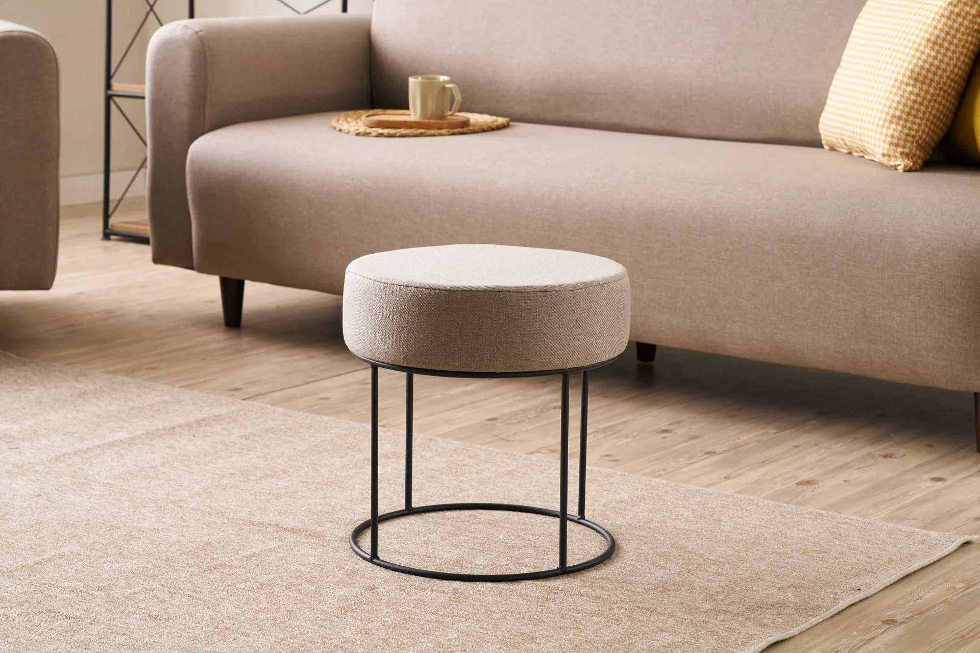Ürün Ölçüleri: Çap : 40 cm Yükseklik (Ayaklar Dahil) : 40 cm Ürün Özellikleri: İskelet : Demir iskelet ve siyah mat boya kullanılmıştır.; Sünger : Oturum süngerleri 32DNS Soft Sünger Gri.; Kumaş : Keten görünümlü polyester ve pamuk karışımıdır.; Uygunluk : Çevre ve çocuk sağlığına uygun malzemeler ile üretilmiştir.; Paket : Mobilya ambalajı ile paketlenmiş ve toz girmesini önleyici ince naylon ile korunmuştur.; Paket Adet : Ürün 1 paket olarak gönderilmektedir.; Kurulum : Kurulum gerektirmemektedir.; Ürün iadesinin kabul edilmesi için; Ürünü size gönderilen sevk irsaliyesi ile birlikte gönderin.; Ürünün orijinal kutusu/ambalajı bozulmamış, hasarsız, eksiksiz, tekrar satıla bilirlik özelliğini kaybetmemiş olması gerekmektedir.; Aksi durumlar için ürün zarar bedeli satın almış olduğunuz satış platformu yetkilisine bildirilecektir.; Ürünlerin size sağlam bir şekilde ulaşmasında paketleme standartları çok önemlidir.; Lütfen ürünü iade etmeden önce eğer ürünü paketinden çıkarmışsanız aynı standartta yeniden paketleyiniz.; Bütün standart aksesuarları hasarsız ve tam olarak orijinal paketleri ile birlikte gönderilmelidir.; Kurulum ve montajı yapılan ürünler için kesinlikle iade işlemi yapılamamaktadır.; Önemli Uyarı: Siparişinizi teslim alırken lütfen kontrol ediniz pakette herhangi bir hasar görürseniz kargo görevlisine hasar tespit tutanağı tutturunuz.; İade ve değişim kuralları gereği hasar tespit tutanağı tutulmadan sipariş iptali yapılan paketlerin iadeleri kabul edilmemektedir