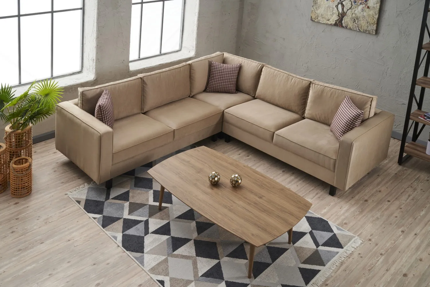 Kale Serisi Köşe Koltuk Kadife Krem
