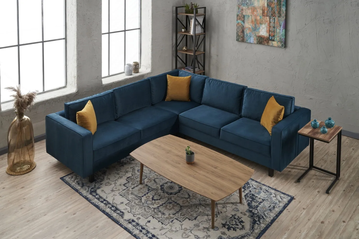 Ürün Ölçüleri: Genişlik : 258 *258 cm Yükseklik : 83 cm Sırt Yükseklik : 43 cm Derinlik : 91 cm : Oturum Derinliği : 60 cm Ayak Yüksekliği : 13 cm Oturum Yüksekliği : 40 cm Kol Kalınlığı : 14 cm İç Genişlik (Kollar Hariç) : 230*230 cm Ürün Özellikleri: Kumaş : Dokuma Kadife, %100 PES kumaş. Sünger : 15 cm 28 DNS Soft Sünger; sırt dolgu minderler kırpıntı sünger ve boncuk elyaf Ayak : Kayın kereste , siyah boyalı ahşap ayak İskelet :Doğal kayın kereste ile panel malzemelerden geçme ve vidalama sistemleriyle üretilmektedir. İskelet : Doğal kayın fırınlanmış kereste ve zıvana geçme ile üretilmiştir. Uygunluk : Çevre ve çocuk sağlığına uygun malzemeler ile üretilmiştir. Paket : Mobilya ambalajı ile paketlenmiş ve toz girmesini önleyici ince naylon ile korunmuştur. Paket Adet : Ürün 3 paket olarak gönderilmektedir. Kurulum : Ürünün sadece ayakları demonte olarak gönderilmektedir. Montaj : Ürün ayaklarını şarjlı tornavida ile monte edebilirsiniz. İçerik : Ayaklar ve bağlantı elemanları ürün paketinden çıkmaktadır.