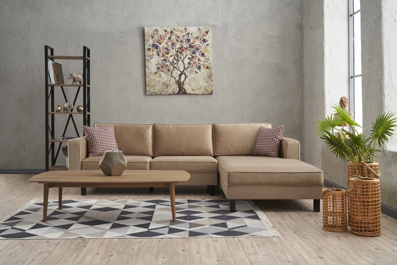 Kale Serisi L Köşe Koltuk Kadife Krem Sağ