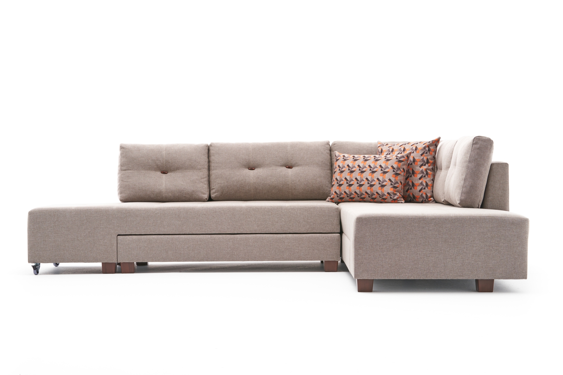 Manama stil yataklı köşe koltuk krem sol bu ürün sol köşe olarak satılmaktadır. ; Sol köşe: Ürüne karşıdan baktığınızda ayak uzatma kısmı solda olması durumudur. ; Ürün ölçüleri: Genişlik : 282x206 cm derinlik : 92 cm yükseklik : 85 cm oturum yüksekliği (ayaklar dâhil) : 42 cm oturum derinliği (yastıklar sırtta) : 63cm oturum genişliği (kollar hariç) : 250x173 cm sırt yüksekliği (sırt yaslanma) : 43 cm yatak ölçüsü : 150x190 cm ayak adet : 12 adet ayak yüksekliği : 7 cm teker : 1 adet ürün özellikleri: Iskelet : Ürün iç aksamı kereste ve yonga levhanın birleşimi ile hazırlanmış olup gerekli bağlantı elemanları ve tutkalla güçlendirilerek üretilmiştir. ; Ayak : Ayaklar ceviz kaplama renginde sert plastik mobilyalar için üretilmiş ayaklarıdır. ; Sünger : Oturum süngerleri 12 cm form marka flexisoft sünger gri. ; Yastık : Şeker kırpıntı sünger ve elyaf karıştırılarak üretilen dolgu malzemesidir. ; Kumaş : Kumaş % 100 yerli üretim dokuma polyester ve pamuk karışımıdır. ; Uygunluk : Çevre ve çocuk sağlığına uygun malzemeler ile üretilmiştir. ; Paket : Mobilya ambalajı ile paketlenmiş ve toz girmesini önleyici ince naylon ile korunmuştur. ; Paket adet : Ürün 2 paket olarak gönderilmektedir. ; Kurulum : Ürün ayakları demonte olarak gönderilmektedir. ; Montaj : Ürün ayaklarını bağlamak şarjlı tornavidaya ihtiyaç olmaktadır. ; Montaj : Ürün paketlerinde kurulum kılavuzları bulunmaktadır içerik : Ayaklar ve bağlantı elemanları ürün paketinden çıkmaktadır.;