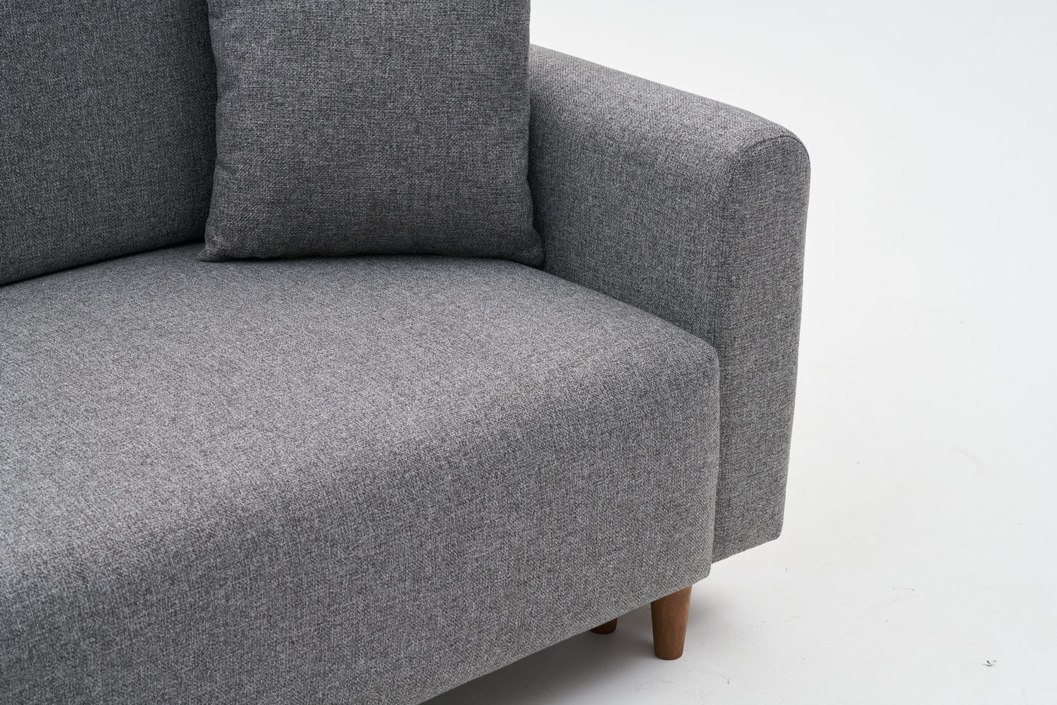 Ürün Ölçüleri: Genişlik : 246 cm Derinlik : 90 cm Yükseklik : 85 cm Oturum Yüksekliği (Ayaklar Dâhil) : 42 cm Oturum Derinliği (Yastıklar Sırtta) : 60 cm Oturum Genişliği (Kollar Hariç) : 210 cm Sırt yüksekliği (Sırt Yaslanma) : 40 cm Köşeden Köşeye (Kapladığı Alan) : 160 cm*246 cm Yatak Ölçüsü : 210 cm*135 cm Uzanma Derinlik (minderler dahil) : 110 cm : Ayak Adet : 11 adet Ayak Yüksekliği : 11 cm Kollar Yerden yüksekliği : 65 cm Ürün Özellikleri: Kumaş : %100 Polyester Keten Görünümlü Dokuma Kumaş Sünger : 28 DNS Orta Sert Gri Sünger Ürünün sırt minderleri boncuk elyaf ve kırpıntı kullanılmıştır.; Ayak : Kayın Kereste Ve Naturel su bazlı boya kullanılmıştır.; İskelet : Köknar Kereste Ahşap mamul mdf ve yonga levha kullanılmıştır.; Uygunluk : Çevre ve çocuk sağlığına uygun malzemeler ile üretilmiştir.; Paket : Mobilya ambalajı ile paketlenmiş ve toz girmesini önleyici ince naylon ile korunmuştur.; Paket Adet : Ürün 2 paket olarak gönderilmektedir.; Kurulum : Ürünün sadece ayakları demonte olarak gönderilmektedir.; Montaj : Ürün ayaklarını şarjlı tornavida ile monte edebilirsiniz.; İçerik : Ayaklar ve bağlantı elemanları ürün paketinden çıkmaktadır.; Ürün Değişimi ve İade Koşulları: Ürünü size gönderilen sevk irsaliyesi ile birlikte gönderin.; Ürün iadesinin kabul edilmesi için; Ürünün orijinal kutusu/ambalajı bozulmamış, hasarsız, eksiksiz, tekrar satılabilir özelliğini kaybetmemiş olması gerekmektedir.; Aksi durumlar için ürün zarar bedeli satın almış olduğunuz satış platformu yetkilisine bildirilecektir.; Ürünlerin size sağlam bir şekilde ulaşmasında paketleme standartları çok önemlidir.; Lütfen ürünü iade etmeden önce eğer ürünü paketinden çıkarmışsanız aynı standartta yeniden paketleyiniz.; Bütün standart aksesuarları hasarsız ve tam olarak orijinal paketleri ile birlikte gönderilmelidir.; Kurulum ve montajı yapılan ürünler için kesinlikle iade işlemi yapılamamaktadır.; Önemli Uyarı: Siparişinizi teslim alırken lütfen kontrol ediniz pakette herhangi bir hasar görürseniz kargo görevlisine hasar tespit tutanağı tutturunuz.; İade ve değişim kuralları gereği hasar tespit tutanağı tutulmadan sipariş iptali yapılan paketlerin iadeleri kabul edilmemektedir