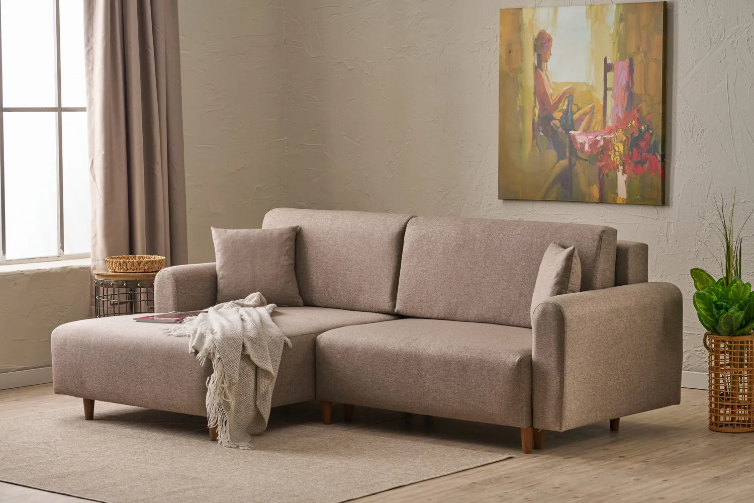 Ürün Ölçüleri: Genişlik : 246 cm Derinlik : 90 cm Yükseklik : 85 cm Oturum Yüksekliği (Ayaklar Dâhil) : 42 cm Oturum Derinliği (Yastıklar Sırtta) : 60 cm Oturum Genişliği (Kollar Hariç) : 210 cm Sırt yüksekliği (Sırt Yaslanma) : 40 cm Köşeden Köşeye (Kapladığı Alan) : 160 cm*246 cm Yatak Ölçüsü : 210 cm*135 cm Uzanma Derinlik (minderler dahil) : 110 cm : Ayak Adet : 11 adet Ayak Yüksekliği : 11 cm Kollar Yerden yüksekliği : 65 cm Ürün Özellikleri: Kumaş : %100 Polyester Keten Görünümlü Dokuma Kumaş Sünger : 28 DNS Orta Sert Gri Sünger Ürünün sırt minderleri boncuk elyaf ve kırpıntı kullanılmıştır.; Ayak : Kayın Kereste Ve Naturel su bazlı boya kullanılmıştır.; İskelet : Köknar Kereste Ahşap mamul mdf ve yonga levha kullanılmıştır.; Uygunluk : Çevre ve çocuk sağlığına uygun malzemeler ile üretilmiştir.; Paket : Mobilya ambalajı ile paketlenmiş ve toz girmesini önleyici ince naylon ile korunmuştur.; Paket Adet : Ürün 2 paket olarak gönderilmektedir.; Kurulum : Ürünün sadece ayakları demonte olarak gönderilmektedir.; Montaj : Ürün ayaklarını şarjlı tornavida ile monte edebilirsiniz.; İçerik : Ayaklar ve bağlantı elemanları ürün paketinden çıkmaktadır.; Ürün Değişimi ve İade Koşulları: Ürünü size gönderilen sevk irsaliyesi ile birlikte gönderin.; Ürün iadesinin kabul edilmesi için; Ürünün orijinal kutusu/ambalajı bozulmamış, hasarsız, eksiksiz, tekrar satılabilir özelliğini kaybetmemiş olması gerekmektedir.; Aksi durumlar için ürün zarar bedeli satın almış olduğunuz satış platformu yetkilisine bildirilecektir.; Ürünlerin size sağlam bir şekilde ulaşmasında paketleme standartları çok önemlidir.; Lütfen ürünü iade etmeden önce eğer ürünü paketinden çıkarmışsanız aynı standartta yeniden paketleyiniz.; Bütün standart aksesuarları hasarsız ve tam olarak orijinal paketleri ile birlikte gönderilmelidir.; Kurulum ve montajı yapılan ürünler için kesinlikle iade işlemi yapılamamaktadır.; Önemli Uyarı: Siparişinizi teslim alırken lütfen kontrol ediniz pakette herhangi bir hasar görürseniz kargo görevlisine hasar tespit tutanağı tutturunuz.; İade ve değişim kuralları gereği hasar tespit tutanağı tutulmadan sipariş iptali yapılan paketlerin iadeleri kabul edilmemektedir