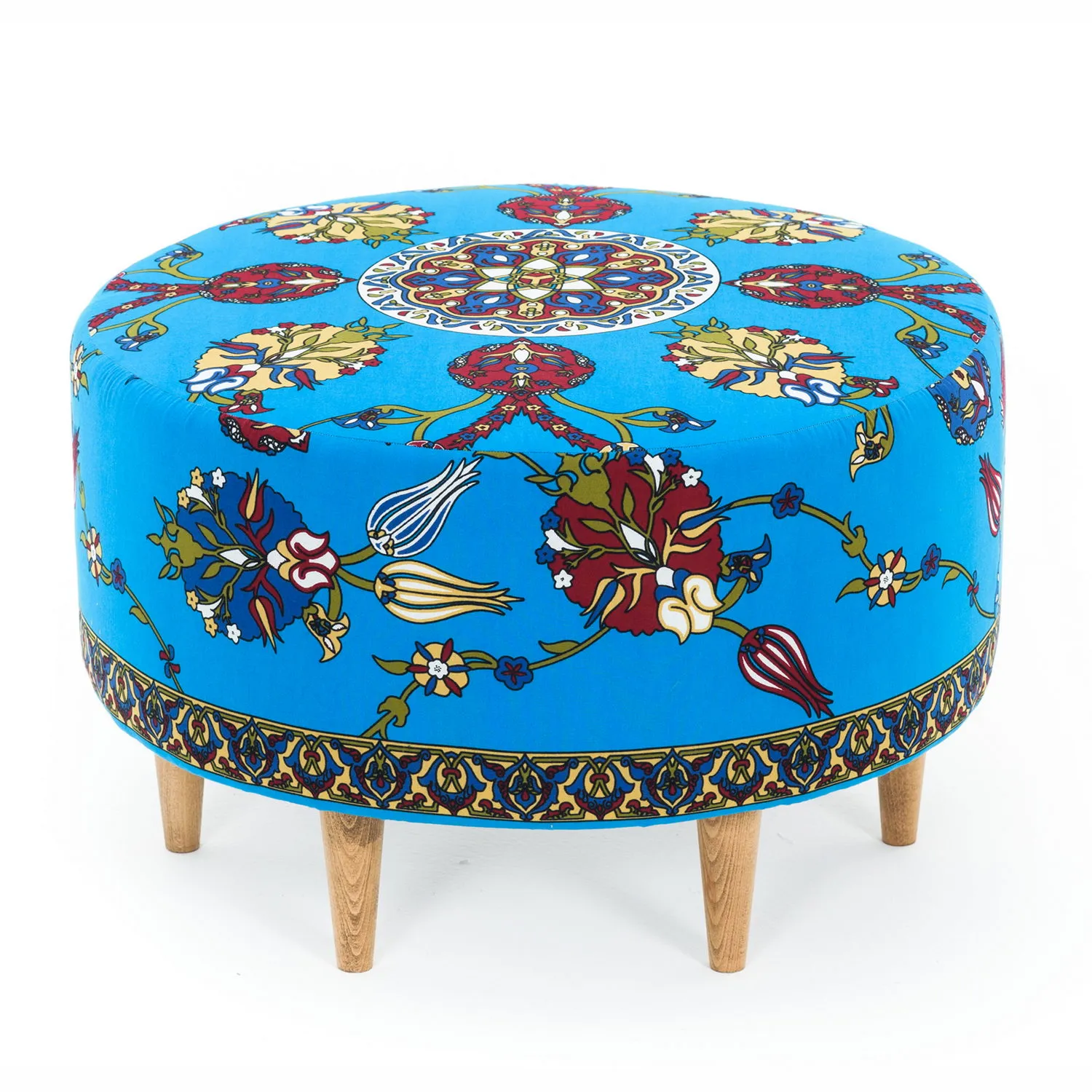 Ürün Ölçüleri: Çap : 65 cm Yükseklik : 40 cm Ürün Özellikleri: İskelet : Ahşap iskelet kullanılmıştır. Sünger : Oturum süngerleri 32DNSSoft Sünger Gri. Kumaş : Baskılı kumaş polyester ve pamuk karışımıdır. Uygunluk : Çevre ve çocuk sağlığına uygun malzemeler ile üretilmiştir. Paket : Mobilya ambalajı ile paketlenmiş ve toz girmesini önleyici ince naylon ile korunmuştur. Paket Adet : Ürün 1 paket olarak gönderilmektedir. Kurulum : Kurulum gerektirmemektedir. Ahşap ayak yapısı ile sağlam ve dayanıklı bir kullanım sunar; Polyester kumaş kaplama, kolay temizlenebilirlik ve uzun ömürlü kullanım sağlar; Silindir formu, modern ve şık bir görünüm kazandırırken mekanınıza estetik bir dokunuş ekler; Sünger gövde materyali, konforlu oturum deneyimi için yumuşaklık ve destek sunar; Standart özellikleriyle her türlü iç mekan dekorasyonuna uyum sağlar;